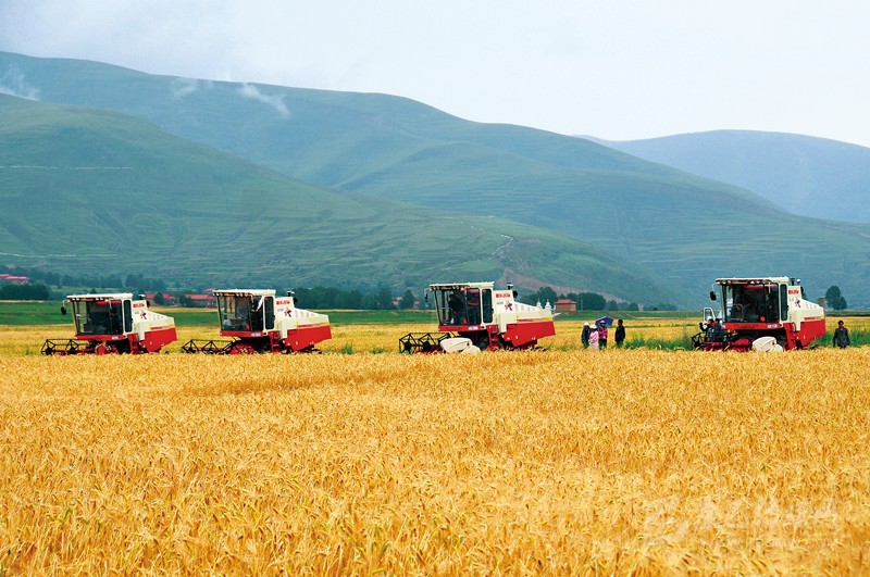 青稞地里,農(nóng)機轟鳴奏響豐收曲。