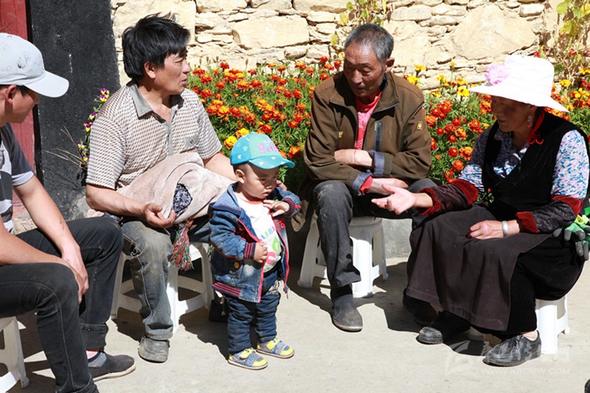 我們正準備走過去看個究竟時,從村辦公室門前拐角小道上走來一個手提袋子、一邊走一邊撿垃圾的藏族老阿媽引起了我們的注意。余小波說:這是我們村的老黨員青立,她正在義務(wù)管護公共村道上衛(wèi)生。每天都如此,而且她管護衛(wèi)生保潔完全出于義務(wù),不要報酬。正是在她和另外2名黨員的義務(wù)管護下,我們村衛(wèi)生才這么好,檢查不檢查都是一樣的干干凈凈。更難能可貴的是,她為我們村發(fā)展高原油菜產(chǎn)業(yè)作出了大貢獻,正是在她的宣傳、引導(dǎo)和示范下,我們村的油菜基地才發(fā)展得這么好。