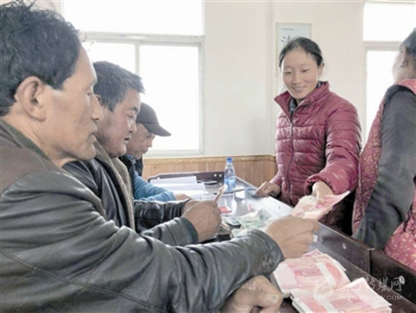 村民丁真志瑪領錢。