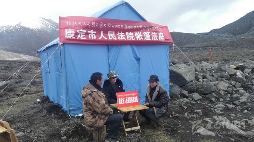 康定市人民法院把巡回法庭搬上山, 在一個簡陋的帳篷外,法律服務(wù)站(點)設(shè)在值勤點,一手抓穩(wěn)定、一手抓審判。“帳篷法庭”的法官在村民家門口審案子,把嚴肅的法理融入知心話告訴當事人,拉近與當事人間的距離,更易于化解矛盾。農(nóng)牧民群眾在春播秋收季節(jié)、蟲草采挖季節(jié)和冬季牧場搬遷時往往忙于勞作,很難抽出時間到法院參加訴訟,因此影響了他們通過司法途徑維護自己的合法權(quán)益。采用“帳篷法庭”、巡回審理的方式就地辦案,及時調(diào)處矛盾糾紛,為群眾提供了便捷的司法服務(wù)。