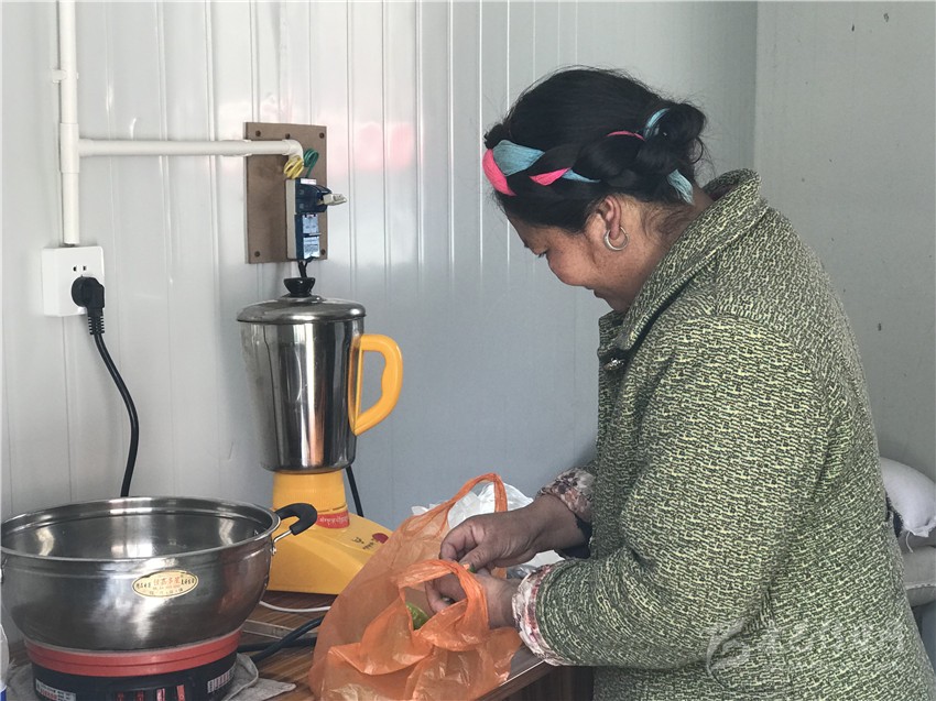 仁青卓瑪一家共四口人,分得農戶四人房?!拔覜]想過板房條件可以這么好,有電有水,還有單獨干凈的廁所,對面就是洗澡的地方,在有些地方甚至比以前住的房屋更便利?!彼呎f邊用抹布擦著灶臺上的油漬,“這里也是家啊,還是要收拾得干干凈凈的,新家新氣象嘛?!敝钡焦P者離開,卓瑪還在自家的板房里忙碌著。