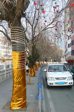 本網(wǎng)訊(記者 周華) 攝在馬年春節(jié)即將來臨之際,一批喜慶的新年裝飾亮相康定街頭,為節(jié)日的康定城增添了幾分喜氣。據(jù)康定縣市政管理局有關(guān)人士介紹,每年春節(jié),康定都要采取措施營(yíng)造節(jié)日氛圍。今年的節(jié)日氛圍營(yíng)造本著節(jié)儉、喜慶、熱烈的原則,在色調(diào)上突出傳統(tǒng)的紅色,融入了福、春、馬年生肖等元素,既有傳統(tǒng)的特點(diǎn),又有民族特色。據(jù)了解,這些節(jié)日裝飾主要分布在城市街區(qū)、廣場(chǎng)及繁華地段。在有城市行道樹的街道,則采用裝飾與燈光結(jié)合的方式,突出城市的動(dòng)感,使夜晚的康定城更加浪漫而富有生機(jī)。
