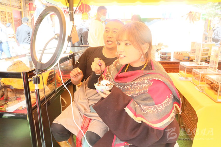 “大家請看我手中的酸奶,純天然,無添加,綠色產(chǎn)品,值得擁有,價(jià)格不高,15元一桶,快遞到家……”納塔鄉(xiāng)展銷點(diǎn)內(nèi)正在做帶貨直播。直播間里,擔(dān)任“帶貨官”角色的工作人員其麥拉姆毫不怯場,說村情、講故事、推產(chǎn)品,為網(wǎng)友介紹了納塔的系列高原特色優(yōu)質(zhì)產(chǎn)品。云端上遇見的特殊主播,讓直播間瞬間畫風(fēng)突變、互動頻頻。留言區(qū)也如流水線一般,源源不斷地流動著網(wǎng)友的互動。