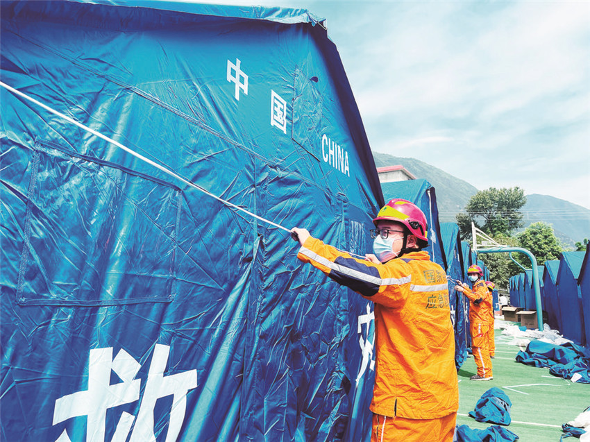 9月8日,當(dāng)救援隊(duì)伍陸續(xù)離開磨崗嶺村的時(shí)候,一頂頂藍(lán)色的帳篷已經(jīng)搭建完畢,村民們已經(jīng)全數(shù)搬進(jìn)救災(zāi)帳篷。記者獲悉,后續(xù)救援物資將通過被搶通的道路陸續(xù)運(yùn)抵村子。