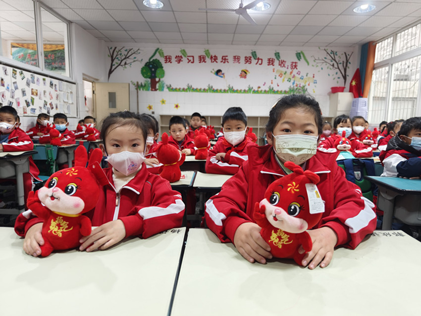 記者注意到,整個(gè)校園及各班教室都布置了精美的迎新文化墻,上面張貼懸掛著學(xué)生們?cè)诤偕钪兄谱鞯闹黝}創(chuàng)意海報(bào)。教室內(nèi),每張課桌上不僅插著寫滿祝福語(yǔ)的彩色氣球,還擺放著用紅絲帶打包好的新課本或一套精美文具或一只兔子玩偶,亦或是棒棒糖、旺仔牛奶等零食,均寓意新學(xué)期大吉大利、越來(lái)越棒、大展鴻“兔”、“兔”飛猛進(jìn)?!斑@些別出心裁的小禮物,能給孩子們留下一個(gè)美好的記憶點(diǎn),在給學(xué)生們帶來(lái)驚喜的同時(shí),也送上一份最美、最真摯的新學(xué)期祝福!”教師黃宇虹說(shuō)。