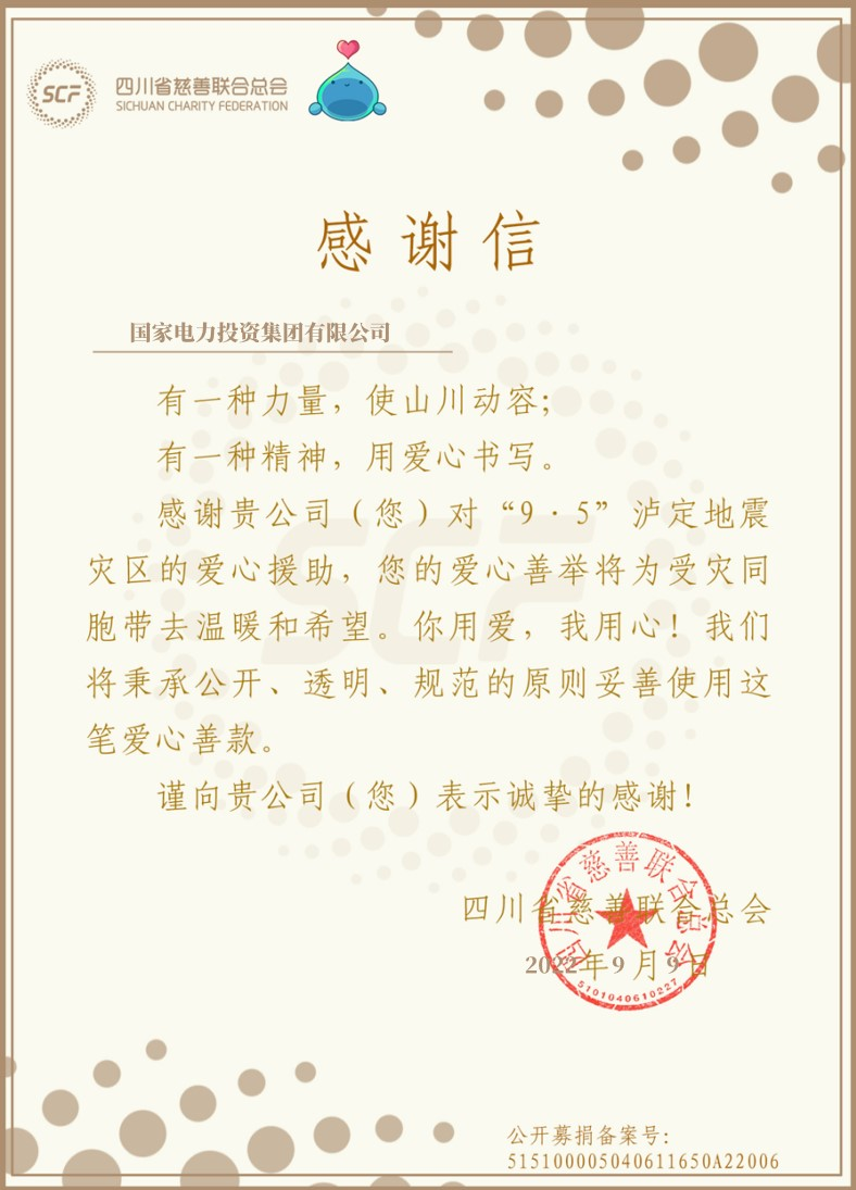 2022年9月5日12時52分,瀘定6.8級地震發(fā)生后,國家電投集團(tuán)立刻向?yàn)?zāi)區(qū)捐款1000萬元,全力支援災(zāi)區(qū)救助和災(zāi)后重建,幫助災(zāi)區(qū)人民共渡難關(guān)。面對災(zāi)情,國家電投甘孜興川公司迅速啟動地震應(yīng)急響應(yīng),做好人員、設(shè)備詳細(xì)排查,防范塌方、泥石流等次生災(zāi)害,保持安全生產(chǎn)穩(wěn)定,千方百計(jì)保安全、保供電,充分發(fā)揮央企能源供應(yīng)“穩(wěn)定器”和“壓艙石”作用,助力災(zāi)區(qū)盡快恢復(fù)生產(chǎn)生活秩序。統(tǒng)籌調(diào)度各方力量,克服疫情和余震影響,緊急采購災(zāi)區(qū)急需的發(fā)電機(jī)、電筒等設(shè)備第一時間送達(dá)災(zāi)區(qū),支援應(yīng)急。在得知瀘定縣得妥鎮(zhèn)電力系統(tǒng)受災(zāi)嚴(yán)重急需救援力量后,公司迅速成立抗震救災(zāi)保供黨員先鋒隊(duì),從正在緊張施工的興川實(shí)證光伏電站抽調(diào)精銳力量26人奔襲700公里,抵達(dá)瀘定縣得妥鎮(zhèn),緊急馳援地方搶險救災(zāi)工作,拆除100多戶危房電源,恢復(fù)2個行政村460戶村民安全用電,贏得當(dāng)?shù)卣蜕鐣鹘缫恢潞迷u。