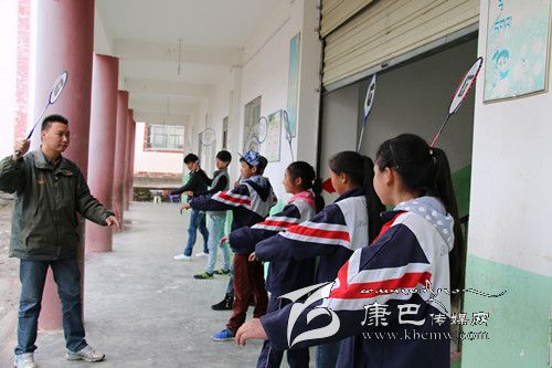 關(guān)軼為校羽毛球隊(duì)做現(xiàn)場(chǎng)輔導(dǎo)。