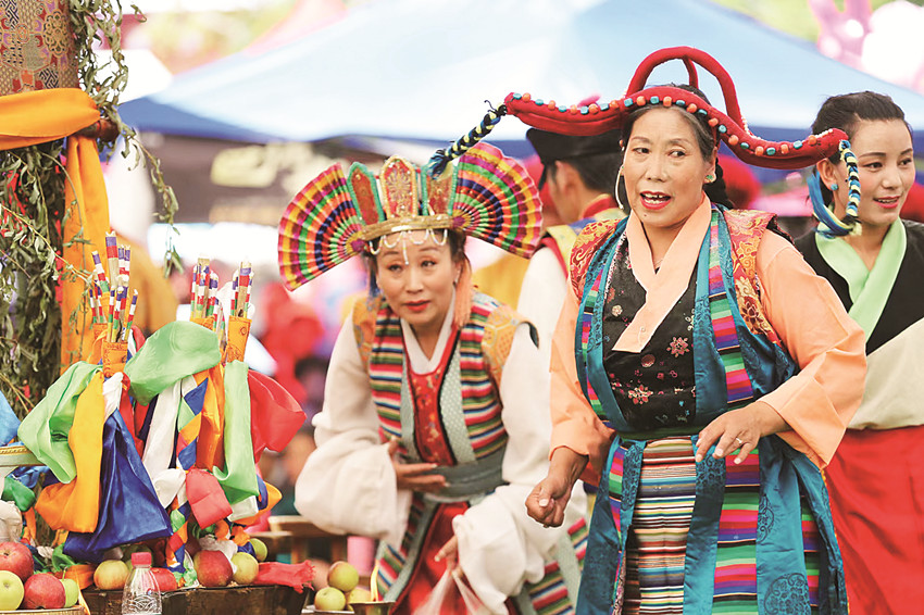 巴塘藏戲團(tuán)帶來了藏戲《智美更登》中“牧人”的唱腔片段,劇情中贊頌家鄉(xiāng)水草豐美,牛羊滿倉的美好景象與九月豐收的巴塘美景相應(yīng)相合。