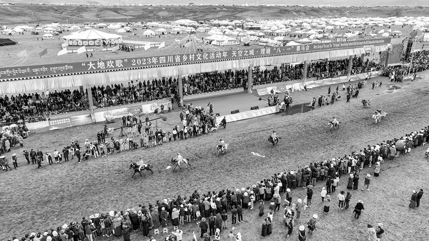 “中國藏族賽馬文化之鄉(xiāng)”“理塘八一傳統(tǒng)賽馬會”是四川涉藏州縣規(guī)模最大的賽馬會,賽馬傳統(tǒng)延續(xù)長達(dá)400余年。“早就聽說過馬背上的理塘,今天終于親眼所見,實在不虛此行。草原追風(fēng),策馬飛奔,蹄聲如雷,震徹山野,這是多么壯美的理塘萬馬奔騰圖啊!多想遠(yuǎn)離城市的喧囂,策馬揚(yáng)鞭,馳騁草原,豪邁瀟灑,勇往直前。以后每一年的理塘賽馬活動,我一定會帶上家人再來這里,因為理塘,可謂是心靈棲息的地方?!痹凇按蟮貧g歌”2023年四川省鄉(xiāng)村文化活動年——天空之城·理塘“八·一”賽馬會上,來自北京的游客石磊被當(dāng)?shù)刭愸R文化吸引,和朋友玩得不亦樂乎。