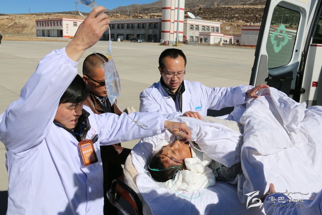 當(dāng)日上午8時(shí)40分,州人民醫(yī)院醫(yī)護(hù)人員對(duì)該名傷員進(jìn)行了轉(zhuǎn)運(yùn)前的最后護(hù)理。隨后,救護(hù)車在綠色通道疏導(dǎo)下,直奔海拔4238米康定機(jī)場(chǎng),在轉(zhuǎn)運(yùn)的過程中,考慮到當(dāng)?shù)馗吆0蔚那闆r,救護(hù)車上安裝了供氧裝置,醫(yī)護(hù)人員全程陪護(hù),將送他到華西醫(yī)院救治。