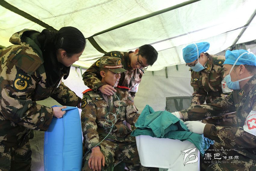 武警二支隊一中隊上等兵楊貞川在搭建板房時,不慎左手拇指深度劃傷2CM,武警四川省總隊醫(yī)院周續(xù)翔副主任與何佳燕護(hù)士長對楊貞川實施清創(chuàng)縫合術(shù)。術(shù)中,小戰(zhàn)士突感頭暈,考慮為輕度創(chuàng)傷性休克,鄭聯(lián)護(hù)士長立即拿來氧氣袋給予吸氧,并像母親一樣關(guān)心安慰她。手術(shù)在4名醫(yī)務(wù)人員的共同努力下順利完成,手術(shù)完成后醫(yī)護(hù)人員向其發(fā)放了消炎藥、并囑其按時換藥,到期扯線。 記者楊珂攝影報道