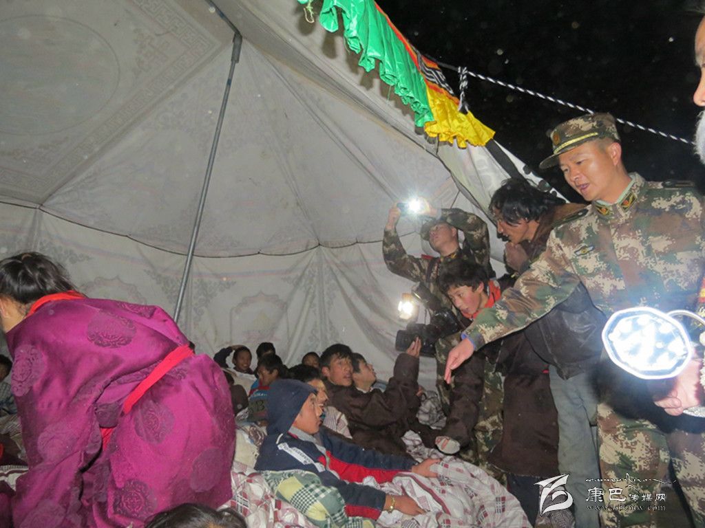 凌晨1時(shí),在江巴村,60名官兵挨家挨戶搜救轉(zhuǎn)移群眾,連夜搭建救災(zāi)帳篷。“同志,我的小女兒拉姆找不著了,可能埋在房子里了……”澤仁阿巴急匆匆地拉著武警戰(zhàn)士的手求援,“你家在哪里?快帶我們?nèi)ィ?rdquo;未等四十歲的澤仁阿巴說完,官兵們奔向不遠(yuǎn)處的一堆倒塌的房屋??紤]到有人埋在下面,官兵們不敢用鎬刨用鍬鏟,在另一面墻上石片不停掉落的情況下,仍然紛紛撲下身子扒拉土石結(jié)構(gòu)的殘?jiān)珨啾?,最終在兩個(gè)木箱中間找到了已哭成淚人的小拉姆,所幸6歲的拉姆安然無恙。