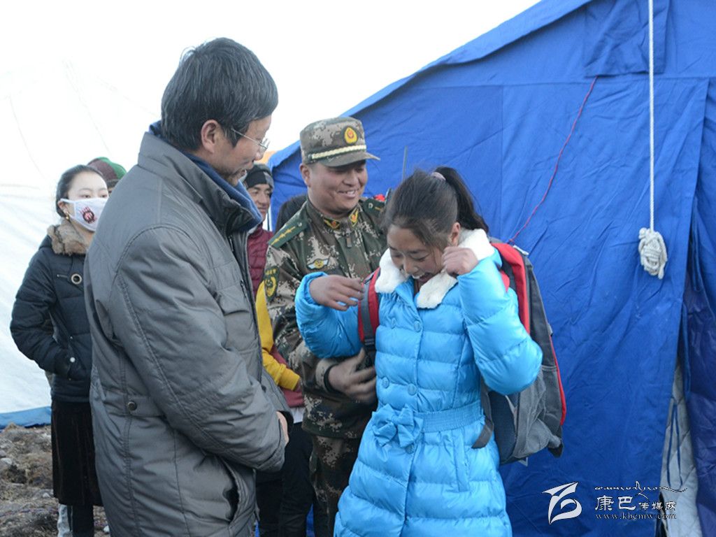 由于受此次地震影響,西康福利學(xué)校的孩子們已經(jīng)放假回到親戚家寄宿。塔公救災(zāi)一線的官兵們利用休息時(shí)間,向胡忠仔細(xì)打聽5個(gè)孤兒的身高和臨時(shí)住址,大家主動(dòng)集資專門采購(gòu)了羽絨服、書包、文具和米面油等物資。10日下午,官兵們?cè)谖骺蹈@麑W(xué)校老師的陪同下,驅(qū)車百余公里,先后深入到塔公鎮(zhèn)江巴村、多拉一村、各日馬村、下馬龍村和朋布西鄉(xiāng)奪讓村,跨河溝、爬山坡,鉆帳篷、進(jìn)板房,提著新買的衣服、書包,扛著米面,逐一走訪這些孤兒所寄宿的家,勉勵(lì)他們?cè)诶Ь持凶詮?qiáng)不息,努力學(xué)習(xí),為自己的夢(mèng)想而頑強(qiáng)拼搏,并與孤兒所寄宿的親戚細(xì)心溝通交流,囑咐他們照顧好可憐的孩子,有困難找武警,大家齊心協(xié)力為孤兒創(chuàng)造一個(gè)溫暖的家,為孤兒的成長(zhǎng)成才盡最大的努力。
