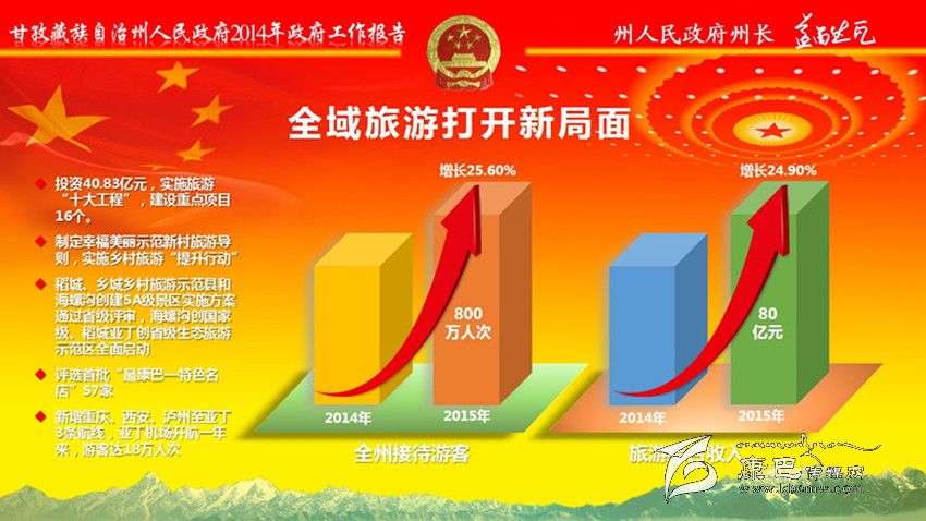 2015年是實(shí)施“十二五”規(guī)劃的收官之年,是承接“十三五”規(guī)劃的奠基之年,是全面深化改革的攻堅(jiān)之年,是落實(shí)政府“1+8”文件的關(guān)鍵之年。政府工作的總體要求是:以黨的十八大和十八屆三中、四中全會(huì)精神為指引,貫徹落實(shí)州委十屆六次全委(擴(kuò)大)會(huì)議精神,堅(jiān)持“統(tǒng)籌聯(lián)動(dòng)、穩(wěn)中求進(jìn)、加快發(fā)展”工作基調(diào),以全域旅游統(tǒng)領(lǐng)經(jīng)濟(jì)社會(huì)發(fā)展,以民生改善凝聚民心民力,以災(zāi)后重建塑造美好家園,以依法治州促進(jìn)穩(wěn)定和諧,推動(dòng)經(jīng)濟(jì)社會(huì)持續(xù)健康發(fā)展。
