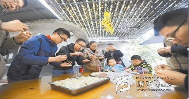 2月6日,雅康高速周公山隧道工地,建設(shè)者和家屬們?cè)诠さ厥程冒溩樱有麓杭压?jié)的到來(lái)。 何海洋 攝
