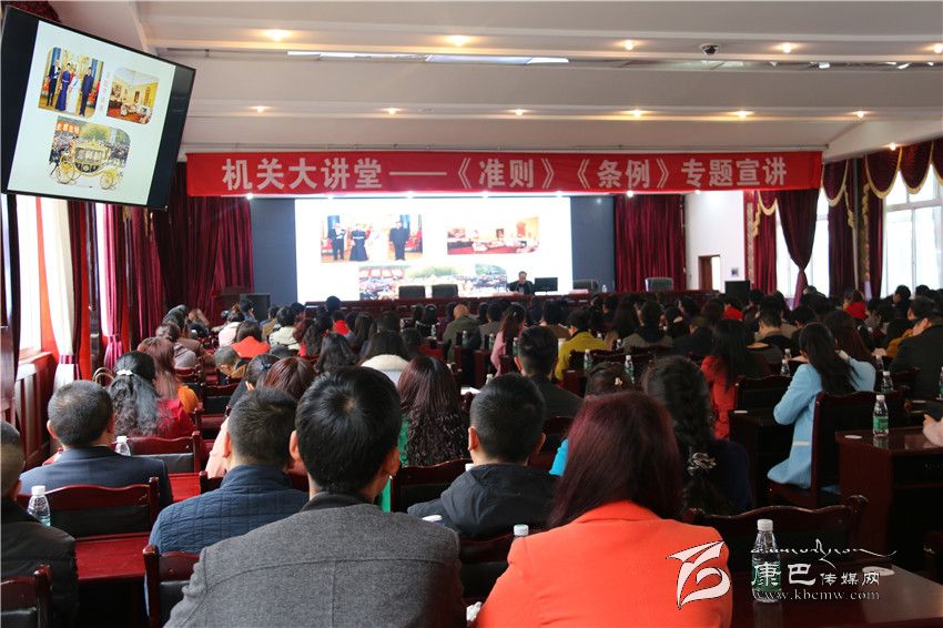 本網(wǎng)訊(記者 宋志勇 文/圖)為推動州直機關(guān)各基層黨組織和廣大黨員干部深入學(xué)習(xí)、宣傳、貫徹兩項法規(guī),準(zhǔn)確把握“兩項法規(guī)”的內(nèi)涵和精神實質(zhì),真正把黨規(guī)黨紀(jì)的權(quán)威樹起來、立起來、執(zhí)行到位。4月6日上午,州直工委舉辦“機關(guān)大講堂”——貫徹學(xué)習(xí)《中國共產(chǎn)黨廉潔自律準(zhǔn)則》和《中國共產(chǎn)黨紀(jì)律處分條例》專題宣講會,來自州級機關(guān)、省屬單位科級以下黨員干部共300多人聆聽了講座。