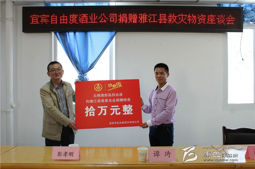 會上,彭孝剛代表宜賓自由度酒業(yè)有限公司向雅江縣慈善總會捐贈了包括救災(zāi)帳篷、棉被等價值10萬元的物資。