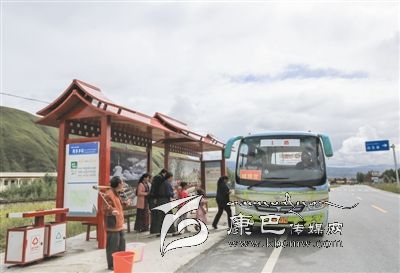 甘孜縣公交車開進(jìn)鄉(xiāng)村。