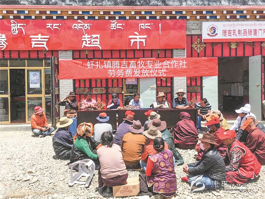 蝦扎鎮(zhèn)吉畜牧專業(yè)合作社勞務(wù)費發(fā)放儀式現(xiàn)場。