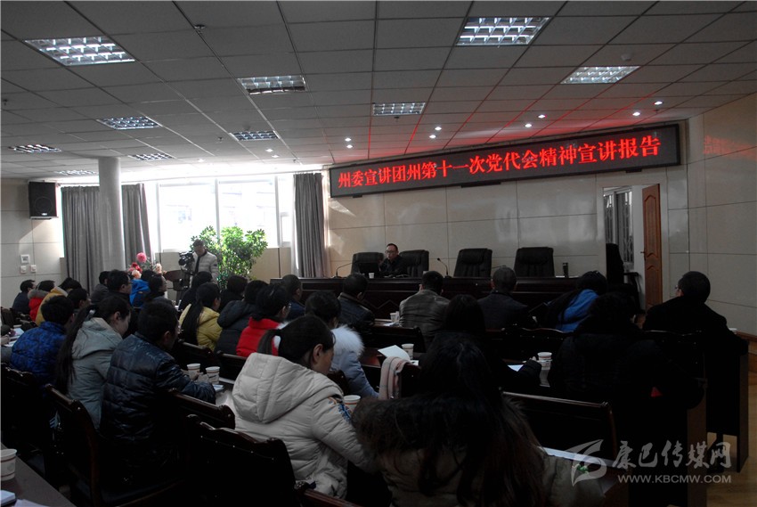 徐杰通過PPT的形式,圖文并茂的從全面了解州第十一次黨代會的主題、主要成果和起草過程,準確認識過去五年工作的成績經驗,深刻把握州第十一次黨代會對當前形勢的分析、五年工作的指導思想和奮斗目標,精確把握和全面落實未來五年全州經濟社會發(fā)展任務,堅持全面從嚴治黨、不斷夯實黨的執(zhí)政根基五個方面,以詳實的數據、生動的畫面、平實的語言,提綱挈領、深入淺出地講解了州第十一次黨代會精神。