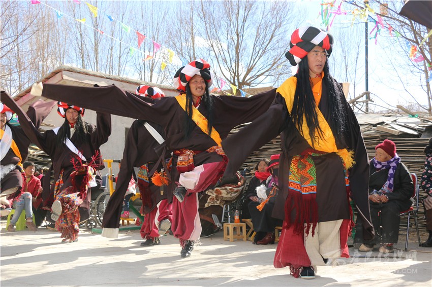 演出現(xiàn)場,80歲的澤則瑪高興地說:“我們一直都是從電視上觀看全國各地舉辦的新春文藝表演,沒想到今年春節(jié)我們小小的一個(gè)村子也有了自己的舞臺?!贝竽瓿跻?,村民們早早吃過飯,穿上表演服在村級文化活動室等待10點(diǎn)鐘正式演出,活動室外的觀眾們正翹首以盼。伴隨著歡快的歌舞聲響起演員們翩翩起舞,為村子增添了節(jié)日的歡樂。