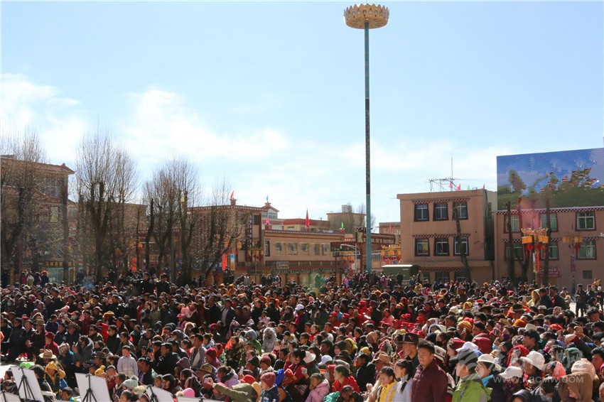 本網(wǎng)訊(余應瓊 肖開心 文/圖)1月31日,大年初四,甘孜縣中心體育場襟飄帶舞,人山人海,該縣2017年迎新春民間文藝演出在這里熱鬧舉行,演出吸引了各族干部群眾一萬余人觀看。
