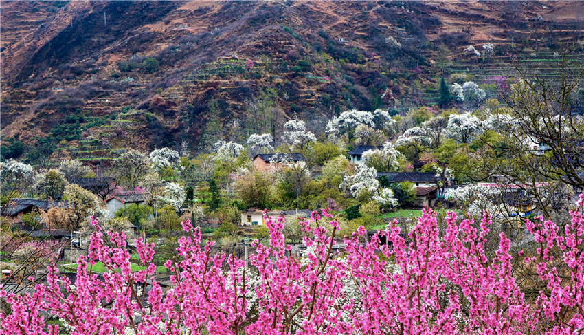 坐落在鮮花叢中的爐霍縣宗塔鄉(xiāng)牧民定居點(diǎn)。楊孝康 攝