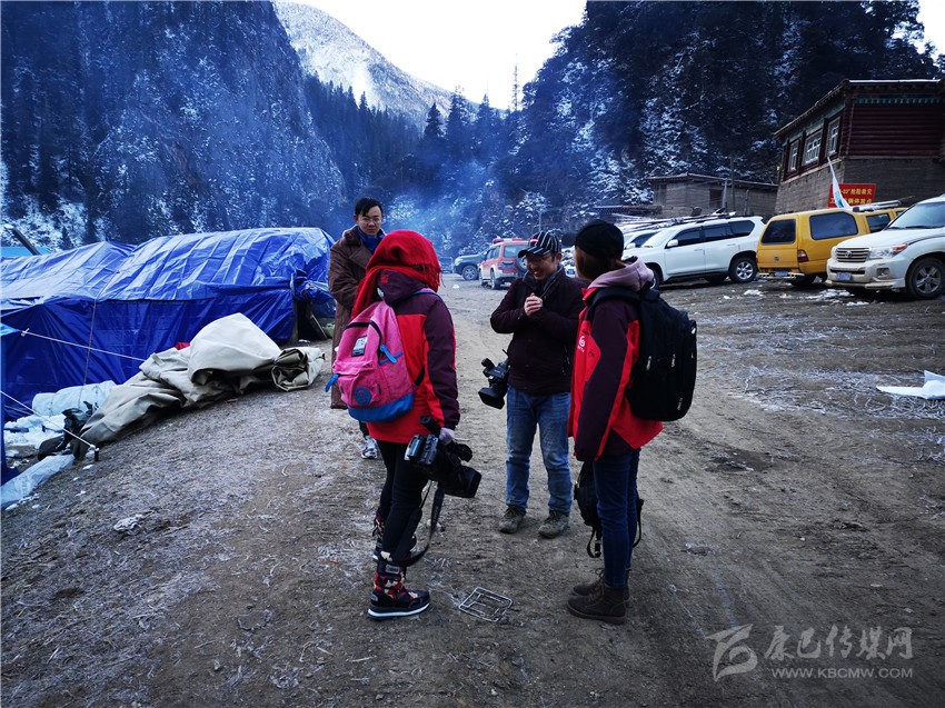 11月6日晚,甘孜日報記者馬建華、張磊、余秋林和州廣播電視臺副臺長何良忠、記者洛嘎、肯布及白玉電視臺記者連夜趕赴則巴村中轉(zhuǎn)站。26公里的崎嶇山路,冰雪道危險重重,坡陡彎急,司機(jī)憑借經(jīng)驗在坡度60度以上的暗冰道上行駛,經(jīng)過兩個多小時的艱難行進(jìn),采訪組終于入住前方救災(zāi)組搭建的救災(zāi)帳篷。深夜,大雪紛揚,帳篷里寒氣襲人。帳篷四周,狗叫聲不止,一條狗鉆進(jìn)帳篷,蜷縮在記者床鋪旁邊,因為太冷,記者們不忍心將它驅(qū)離。11月7日,白格堰塞湖庫容量達(dá)到2.71億立方米,白格堰塞湖形勢嚴(yán)峻,嚴(yán)重威脅我州金沙江下游群眾生命財產(chǎn)安全。一大早,10多公分厚的大雪扮美了村莊,卻給機(jī)具、救災(zāi)物資、救援人員進(jìn)出等帶來極大困擾?!拔覀兊耐诰驒C(jī)司機(jī)在山上被大雪困了一夜,徒步到中轉(zhuǎn)站休息了三個小時又到山上去作業(yè)了,你們應(yīng)該去采訪一下?!敝菡敝蓍L何康林說。
