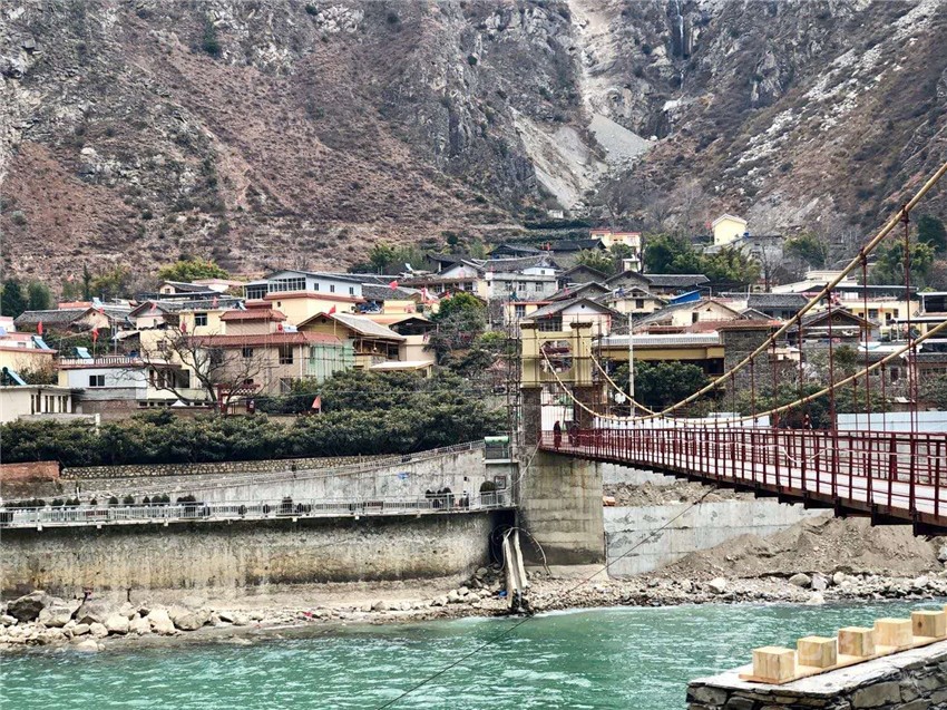 來到時濟(jì)鄉(xiāng),鐵索橋?qū)Π毒褪侨艏?,流淌的大渡河水從橋下穿過,若吉村內(nèi)正在進(jìn)行民居風(fēng)貌升級改造,一些改造的民居外形已初顯。