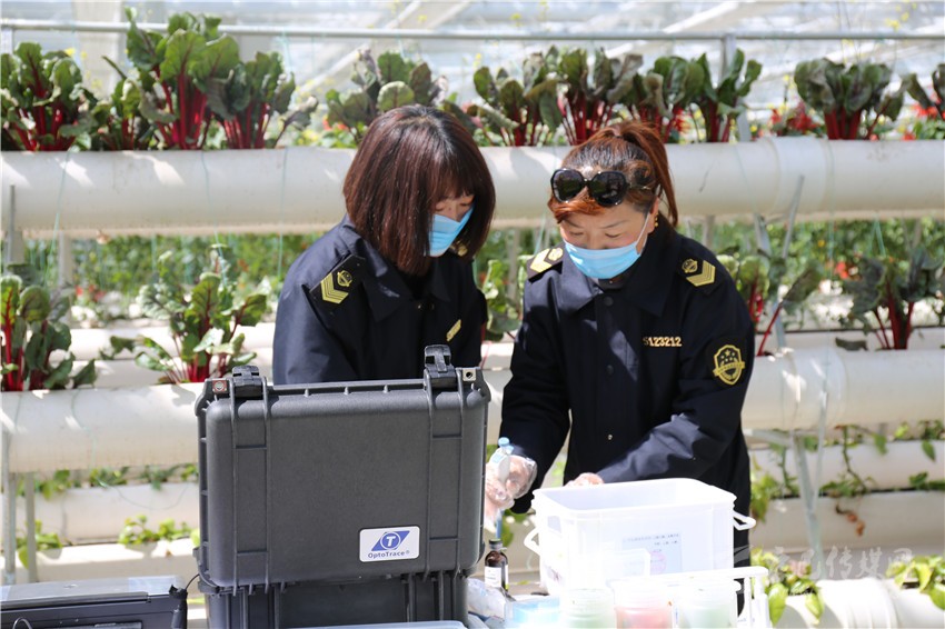 現(xiàn)場(chǎng)檢測(cè)果蔬樣品。