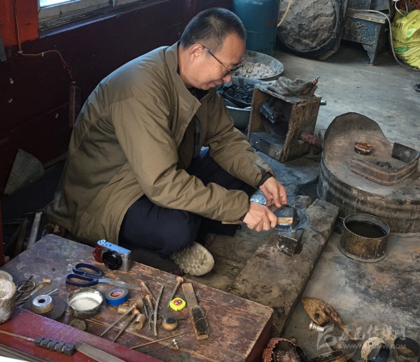 河坡民族金屬手工技藝歷史悠久,盛行于藏民族英雄嶺·格薩爾時(shí)期,至今大約有1300多年的歷史。調(diào)研組每到一處,都要與手工藝人們進(jìn)行深入細(xì)致的交談。在手工藝傳承人布洛家中,見(jiàn)到了正在忙碌制作各種手工藝產(chǎn)品的場(chǎng)景,專(zhuān)家們立即拿出相機(jī)開(kāi)始拍照。同時(shí)抑制不住激動(dòng)的心情,參加到制作中去,有人一邊手持工具現(xiàn)場(chǎng)體驗(yàn)河坡民族手工藝的鍛造,一邊饒有興致地說(shuō):“這里好似人間仙境,就如站在云端學(xué)手藝”。