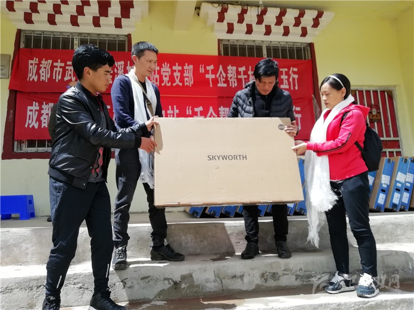 本網(wǎng)訊 為持續(xù)開(kāi)展“千企幫千村”對(duì)口幫扶活動(dòng),近日,成都市武侯區(qū)桂溪加油站組成對(duì)口幫扶工作組來(lái)到白玉縣納塔鄉(xiāng)措拉村,向建檔立卡貧困戶捐贈(zèng)了價(jià)值4萬(wàn)元的液晶電視機(jī)25臺(tái)?!拔壹业碾娨暀C(jī)早壞了,沒(méi)多余的錢(qián)去買(mǎi)新的,沒(méi)想到幫扶組這么遠(yuǎn)給我們送來(lái)了電視機(jī),今年國(guó)慶節(jié)我們?nèi)胰丝梢栽诩依锟撮啽搅?。”村民阿亞麥朵高興地說(shuō)。