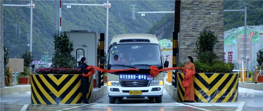 “木雅古碉”建筑矗立兩旁、六出四進(jìn)通道一字排開;巨大熒幕流光溢彩,連接通道窗明幾凈;從無人機(jī)航拍畫面可以看到,一面巨大的五星紅旗,已在站頂平層鋪展開來……9月28日上午8時(shí)整,一輛客車從升航特大橋駛來,撞破紅綢駛向康定城,旁邊車道上等待多時(shí)的車輛依次行進(jìn),雅康高速公路上規(guī)模最大的收費(fèi)站——康定收費(fèi)站正式啟用,康定連接線和入城大道通車。“康定連接線建成后將極大提高雅康高速公路進(jìn)入康定城區(qū)車輛通行效率、有效改善康定入城交通的擁堵狀況?!辈貐^(qū)高速公路公司相關(guān)負(fù)責(zé)人如是說。