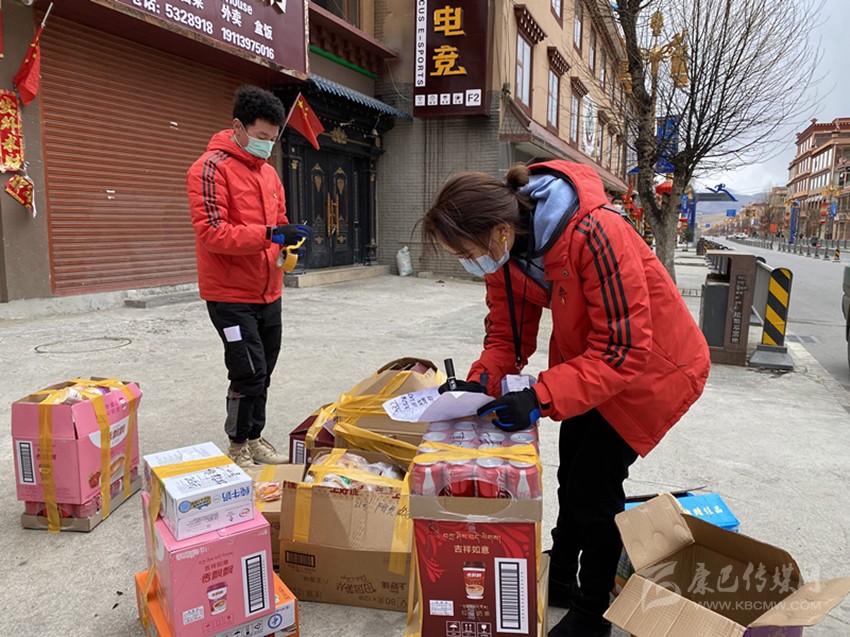 理塘縣志愿者為居民代購物資。