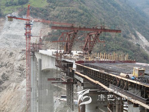 3月12日上午,記者在大崗山水電站S211復(fù)建公路工程(瀘石路)B標(biāo)段跨徑為296米的大渡河大橋(又名灣東大橋)的施工現(xiàn)場(chǎng)看到,高聳的吊裝機(jī)隆隆作響,T梁上鋼筋林立;戴著安全頭盔的施工人員正在精心“編織”鋼筋網(wǎng)陣,掛籃懸臂也同時(shí)在澆筑施工,大橋已初具雛形。連接大橋的聯(lián)合村隧道內(nèi),同樣一派忙碌的場(chǎng)面,挖掘機(jī)、運(yùn)輸車等各類工程車往來(lái)進(jìn)出,施工便道上馬達(dá)聲轟鳴;正在洞口緊張焊接的鉆孔臺(tái)架上劃出一道道閃亮的弧線;隧道內(nèi)燈火通明,工人們正有條不紊地在洞壁上鉆孔……