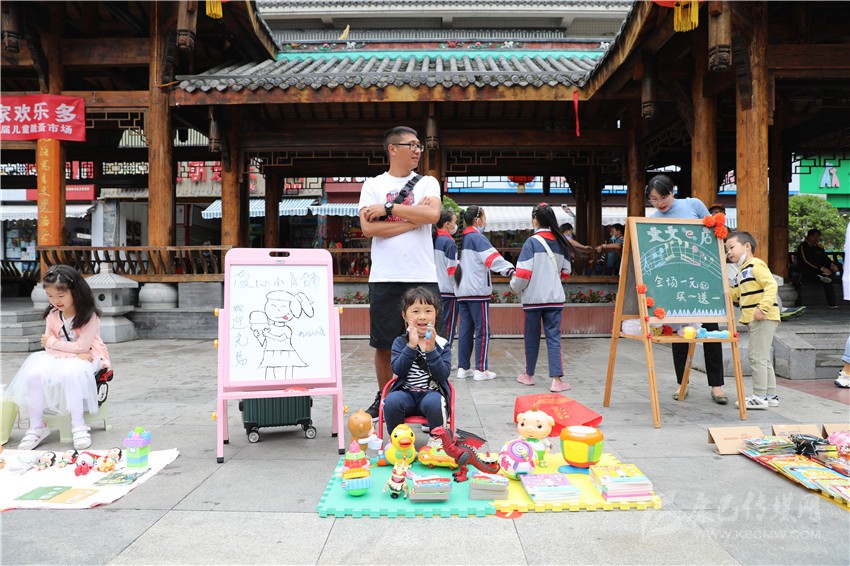 “這個(gè)玩具1元錢賣不賣?”“已經(jīng)很便宜啦!最低3元錢?!?月31日,瀘定橋廣場人流涌動(dòng)、熱鬧非凡,叫賣聲不絕于耳,不少“小顧客”在各個(gè)攤位之間,認(rèn)真地挑選自己心儀的商品,有模有樣地討價(jià)還價(jià),廣場變成了熱鬧的自由貿(mào)易市場。