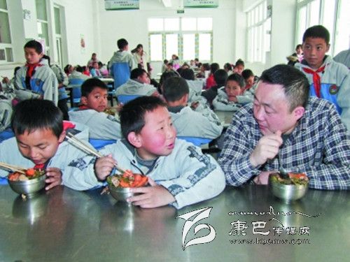 聽到聲音,康武賓館老總余輝立即來到學(xué)生們中間,把剛打好的飯菜放在桌上,便詢問道:“飯菜香不香,現(xiàn)在是你們長身體的時候,要吃好、吃飽,平時要養(yǎng)成好的飲食習(xí)慣。”