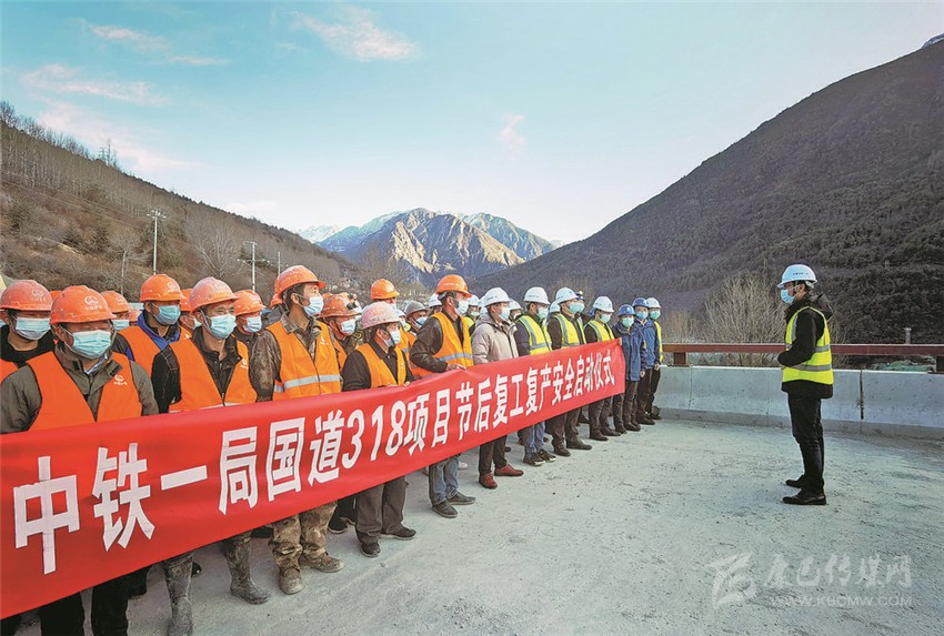 中鐵一局國道318線康定市過境段公路工程項(xiàng)目舉行復(fù)工儀式。