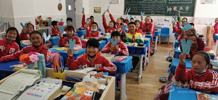 康定市民族小學(xué)的孩子們展示收到的“綠書簽”。