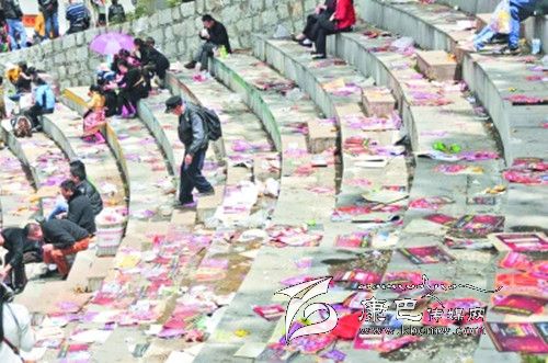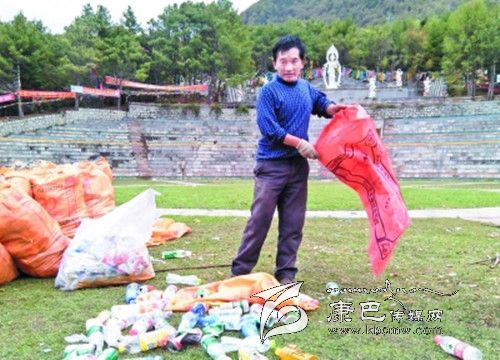 5月6日是康定縣一年一度“四月八”跑馬山國(guó)際轉(zhuǎn)山會(huì),上萬(wàn)人在跑馬山上祈福游玩。5月7日在一家爆料網(wǎng)站上一位網(wǎng)友發(fā)布了一篇名為《甘孜康定跑馬山萬(wàn)人轉(zhuǎn)山會(huì)后垃圾遍野》的微博。微博原文中說(shuō):“2014年05月06日,四川省甘孜藏族自治州,滿(mǎn)負(fù)荷的垃圾桶。跑馬山景區(qū)垃圾遍野。當(dāng)天是農(nóng)歷四月八轉(zhuǎn)山會(huì),景區(qū)免門(mén)票,至少有上萬(wàn)游客涌入景區(qū),參加轉(zhuǎn)山會(huì)活動(dòng)。”針對(duì)該網(wǎng)友爆料的情況記者走訪(fǎng)了康定跑馬山景區(qū)。在景區(qū)現(xiàn)場(chǎng)記者的確見(jiàn)到大量的垃圾“橫尸遍野”。藍(lán)天白云、青青草地真可謂詩(shī)情畫(huà)意,可是眼前的美景卻被無(wú)數(shù)的垃圾破壞。不知何時(shí)起旅游、垃圾仿佛成了連體嬰兒,甩也甩不掉,什么時(shí)候長(zhǎng)假、旅游與垃圾才能隔離開(kāi)來(lái)呢?帶著疑問(wèn)記者采訪(fǎng)了景區(qū)相關(guān)負(fù)責(zé)人。