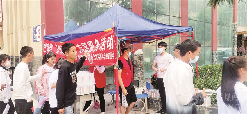 圖為妹妹為參加中考的哥哥獻上鮮花。