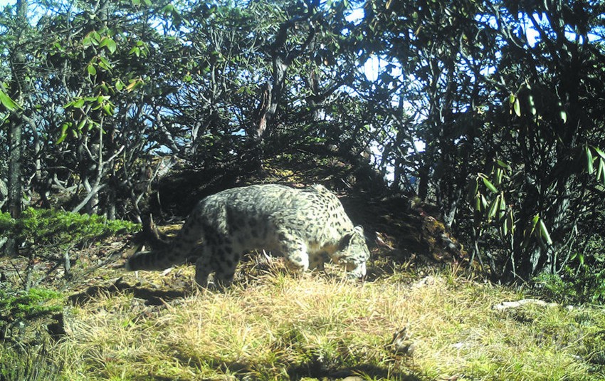 “可能很多人都不知道,距離四川成都城區(qū)這么近的地方有雪豹?!贝笮茇垏夜珗@崇州管護(hù)總站副站長王磊介紹說,收集回來的監(jiān)測畫面中,有7個監(jiān)測點位的紅外相機(jī)都監(jiān)測到雪豹活動的身影。
