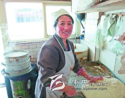 姜瓊芳是雅安漢源人,十幾年前就和親戚一起來康定打工,她賣過菜、打過零工,2010年,有了一點(diǎn)積蓄的姜瓊芳開起了一家小吃店,專賣早餐,包子、花卷、饅頭、酥油茶、稀飯,雖是小生意,可也做得紅紅火火。因?yàn)榻偡紴槿藷崆椤蹘兔?,做的各類早點(diǎn)味道好、分量足,所以每天早早地就賣完了,還有很多老顧客早上就要來訂購還沒做好的包子、饅頭。