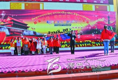 康定縣少先隊員代表藏區(qū)少先隊員參加央視“六一”晚會。