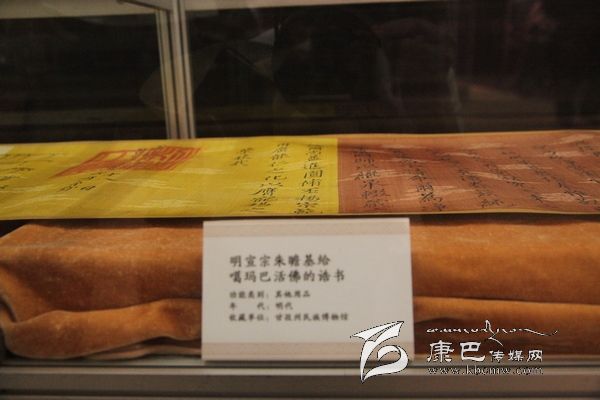 據(jù)介紹,明成祖永樂十一年封誥為國家一級文物,系明永樂帝成祖朱棣于明永樂十一年(1413)敕封噶瑪噶舉楚布寺第二世司徒活佛曲吉降村為“灌頂圓通妙濟國師”時頒賜。那是一份來自600年前的古老信息,也是一份見證中國千百年來民族團結(jié)、祖國統(tǒng)一的誥文。誥文清楚的記述了“永樂盛世”中甘孜人民在華夏大家庭中的和諧與共,也把宣德年間明朝文化,經(jīng)濟繁榮階段中康巴文化的不可或缺緊密的聯(lián)系在一起。