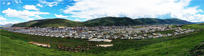 色達縣色柯鎮(zhèn)易地扶貧安置點“安康社區(qū)”全景。