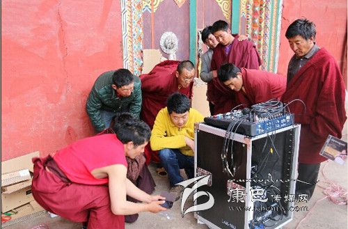 “這是功放機(jī),這是DVD,這里是話筒插口,音量大小就在這里調(diào)節(jié)……”在德格縣溫拖鄉(xiāng)滿金寺的大殿外,僧人白扎正專心記錄著音響調(diào)音臺的使用方法,并用自己的手機(jī)全程錄下了整個操作流程。