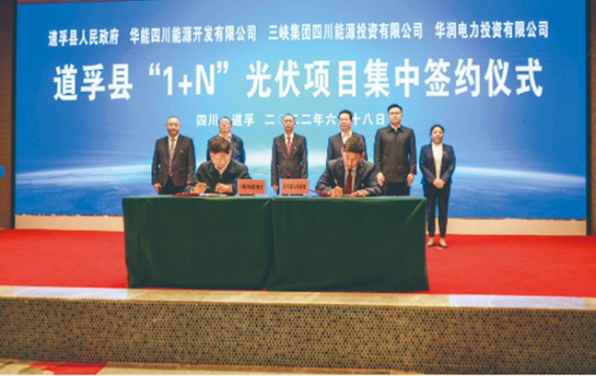 道孚縣“1+N”光伏項(xiàng)目位于道孚縣色卡鄉(xiāng)、龍燈鄉(xiāng)、木茹鄉(xiāng),計(jì)劃靜態(tài)總投資75億元,規(guī)劃總裝機(jī)容量150萬千瓦,包括亞日I標(biāo)50萬千瓦、亞日II標(biāo)50萬千瓦、龔呂50萬千瓦三個(gè)光伏項(xiàng)目。2022年6月18日,道孚縣人民政府與三峽集團(tuán)四川能源投資有限公司在道孚縣舉行亞日Ⅱ標(biāo)50萬千瓦光伏電站簽約儀式,標(biāo)志著該縣向打造“千萬千瓦級(jí)清潔能源基地”邁出實(shí)質(zhì)性、關(guān)鍵性一步。