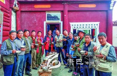 創(chuàng)作采風期間,北部高原帶著泥土芬芳的生活深深地陶醉了隊員們,不知不覺,大家都成了早起晚歸,不辭艱辛的攝影人。每天早上4、5點起床是常事,夜幕四圍才吃晚飯更是習慣。團結、協(xié)作、樂于助人成為一種自覺的風氣:60多歲的趙文光老師退休前曾任過康定縣宗教局和縣政法委領導,他成為采風隊最好的藏語翻譯;身板硬朗的他還被稱為“能攆獐子”的人。隊員辛沂外出拍照的時間最多,走的地方也很多,外出經(jīng)驗豐富,他精心準備的常用藥品熱心幫助了許多人。唐保安老師工作時常到農(nóng)村牧區(qū)調研,日積月累的基層生活知識成了采風中不可多得的向導。被譽為攝影后期制作高手的胡庭輝每天義務為隊友考貝蓄存卡,講解攝影知識。王明陽、游建中更是身體力行地作表率,吃苦在前,當向導定拍攝點,心甘情愿地為隊友們服務。在宗塔草原民居接待站,高齡的代奇元老師和游建中不顧外出拍攝的勞累,主動熱心地親自下廚,為隊友們做出可口的飯菜。13日上午,藍色中巴在海拔3600公尺的老折山爆胎,州攝協(xié)主席,也是這次帶隊的郭昌平身先士卒,帶領會修車的胡庭輝、黃元康等不顧高山缺氧,積極幫司機換輪胎。離開宗塔草原最后一晚,原本安排此行唯一一次早上8點起床,讓隊員們好好休息一個早上,沒想到不到早上6點,全體隊員無一遺漏地都起床追光逐影拍照去了。來自四川民族學院的黃元康外出拍照返回,還忙著幫中巴車李師傅擦洗車廂。李師傅在創(chuàng)作采風期間也深受感染,這天也沒在床上呆住。他對筆者說:這段時間和你們早晚相處,才知道攝影創(chuàng)作有多辛苦,你們的吃苦耐勞精神不得不讓人佩服。我今早上也睡不著呀,起來擦洗車廂,也想讓你們路途中乘坐得舒服一點……