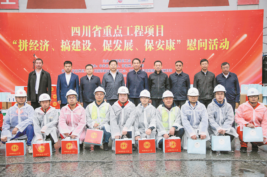 省委常委、統(tǒng)戰(zhàn)部長趙俊民(左五),州委書記沈陽(右四)等領(lǐng)導(dǎo)赴甘孜州重點(diǎn)工程項(xiàng)目開展“拼經(jīng)濟(jì)、促發(fā)展、保安康”慰問活動。